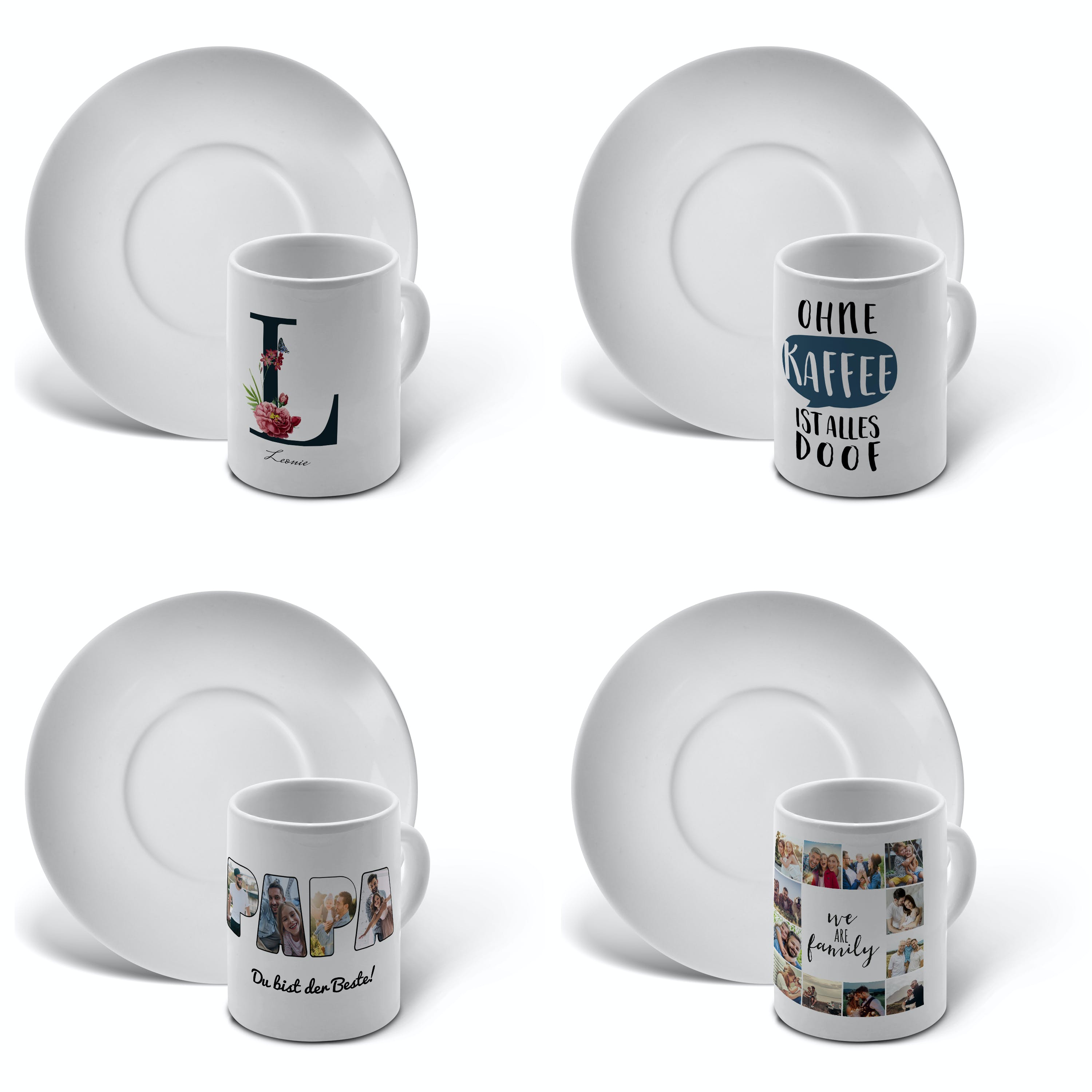 Ein stilvoller Start in den Tag. Mit der personalisierten Espressotasse mit Foto oder Namen genießen Sie einen ganz individuellen Trinkgenuss. Fühlen Sie sich wie in Italien und bedrucken Sie Ihren Espresso Tasse mit eigenem Foto, Namen oder Wunschtext und sorgen Sie für immer währendes Urlaubs-Feeling. Ob für den kleinen Kaffee nach dem Essen, ein Nachmittags-Treffen mit den Liebsten oder für die Kaffeepause im Büro: Die individuelle Espresso Tasse ist immer wieder ein persönlicher Begleiter durch den Alltag.